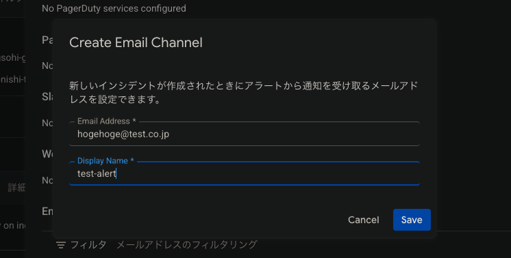 画像のように、PagerDutyやSlack、メールなどを通知先として設定できます