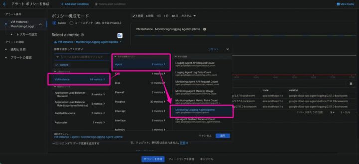 VM Instance > agent > Monitoring/Logging Agent Uptime と選んでいきます