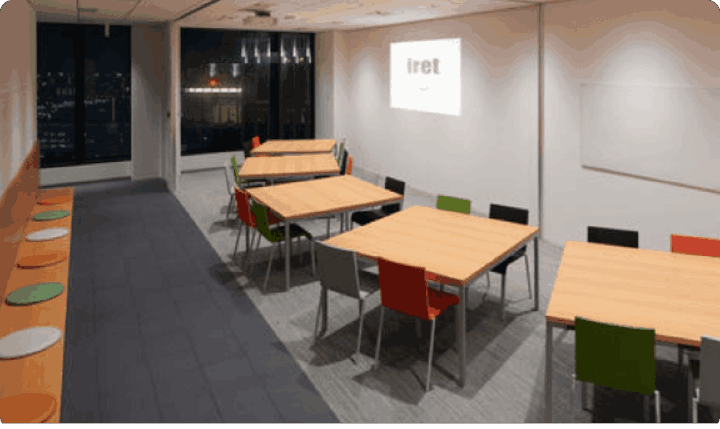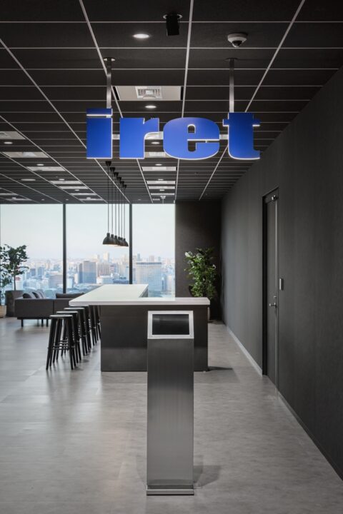 当日、東京本社のラウンジに足を踏み入れると、ひときわ目を引く大きな「iret」のロゴが学生の皆さんをお出迎え。