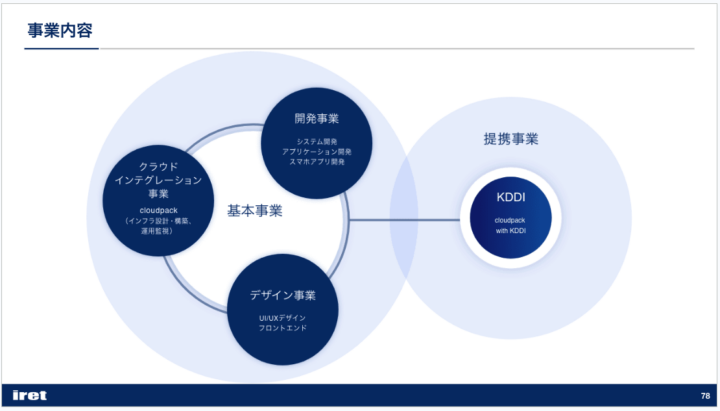 アイレットが創業以来培ってきたクラウドの強みや、インフラ構築からシステム開発、デザインまでをワンストップで提供するビジネスモデルについて、実績を交えてお話ししました。