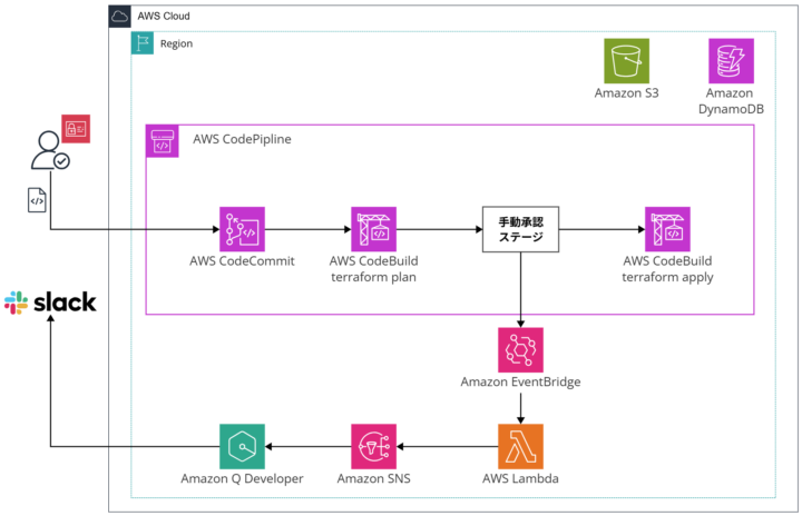 terraform plan結果を確認した後に手動承認を行うフロー。 - カスタム通知の実装