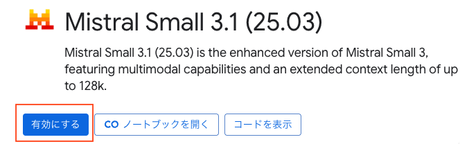 このモデルを使用できるよう、Vertex AI の Model Garden で有効化します。