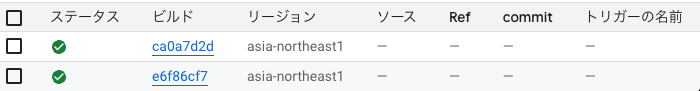 デプロイ完了後、Google Cloud のプロジェクトに入り、Cloud Build、Cloud Run を見てみます。