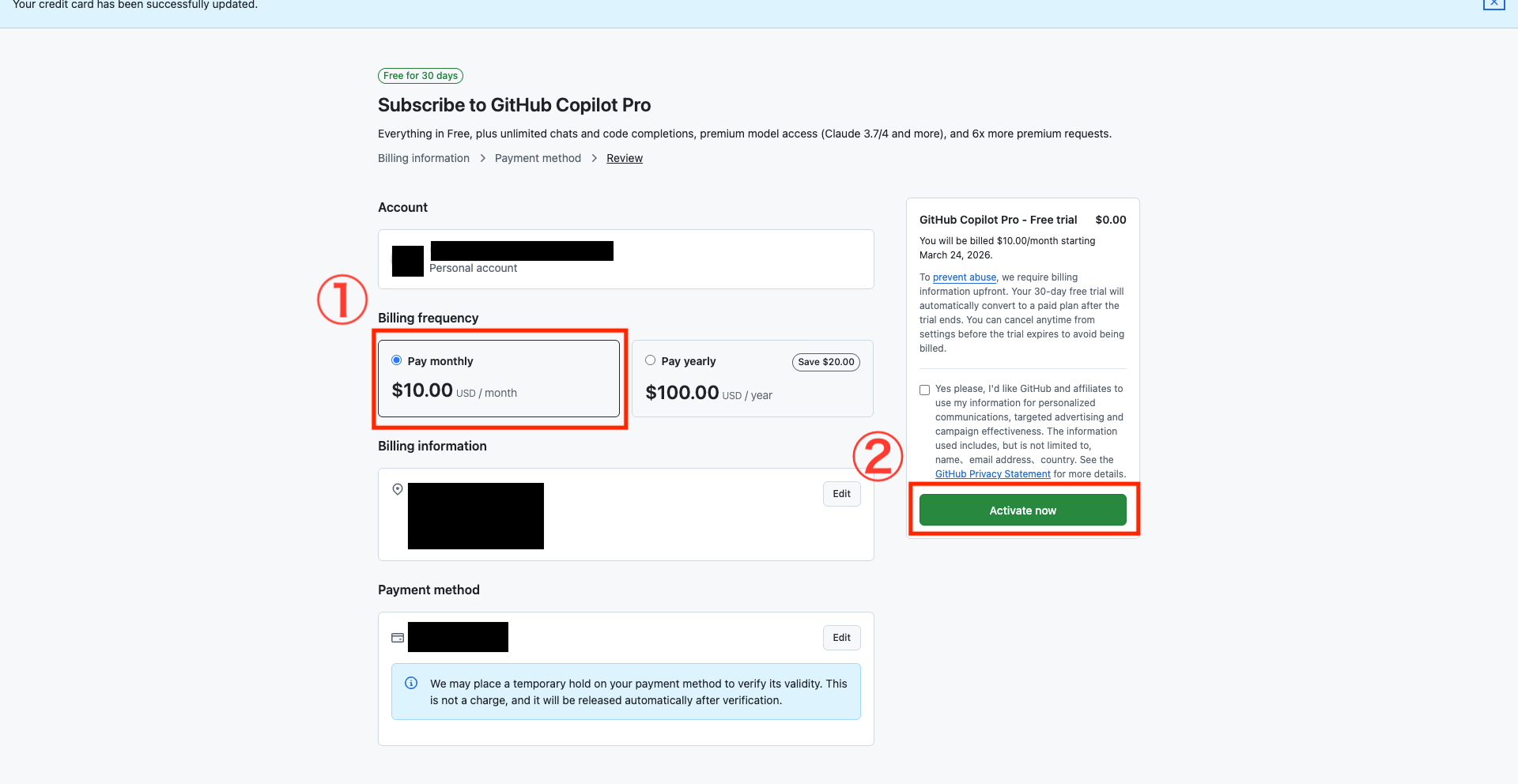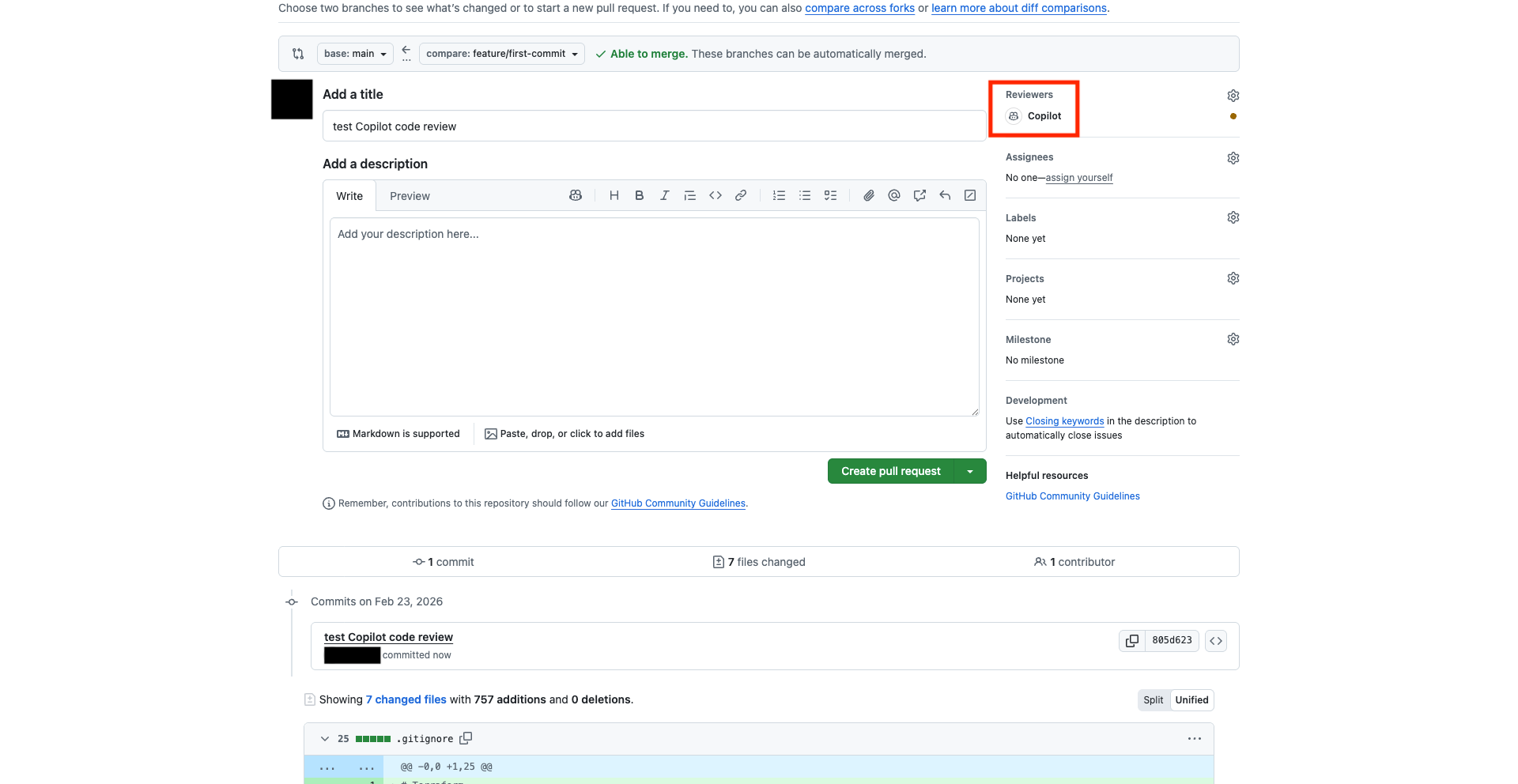 Copilot Code ReviewはPull Requestに対して自動でレビューコメントを提案してくれる機能ですが、利用には有料プランへの加入が必要です[3]。