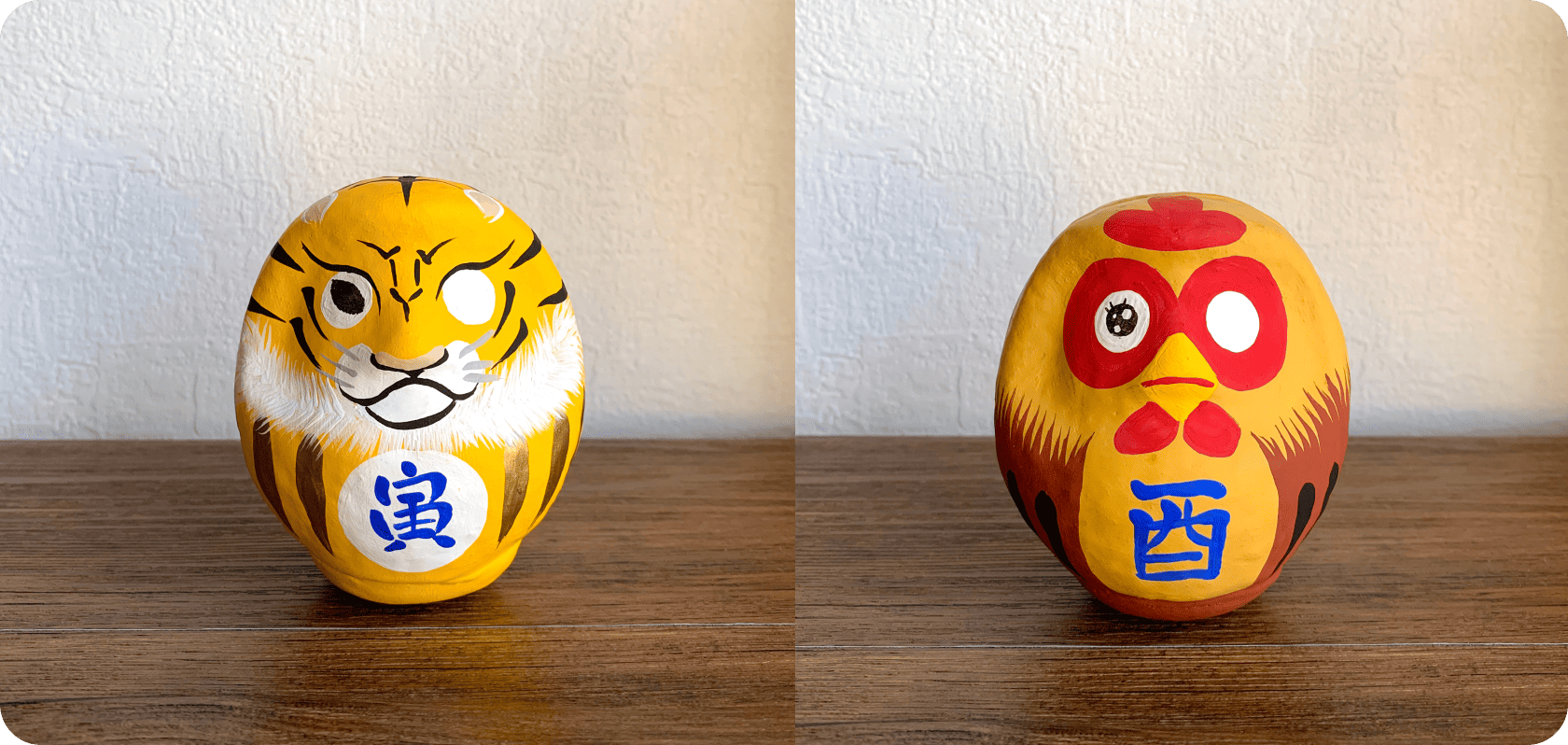 寅・酉だとこんな感じになります。 同じ型を使っていますので並べてもかわいいです。