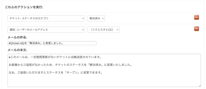 今回は、自動でチケットのステータスを「解決済み」に変更する自動化をご紹介しました。