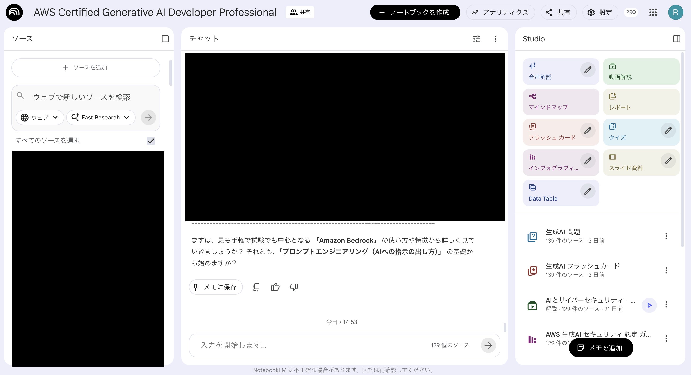 NotebookLMを使った学習は、従来の「誰かが用意してくれた教材を学習」するスタイルではなく、「自らソースを集めて生成させ、AIと対話しながら教えてもらう」という新しい体験でした。