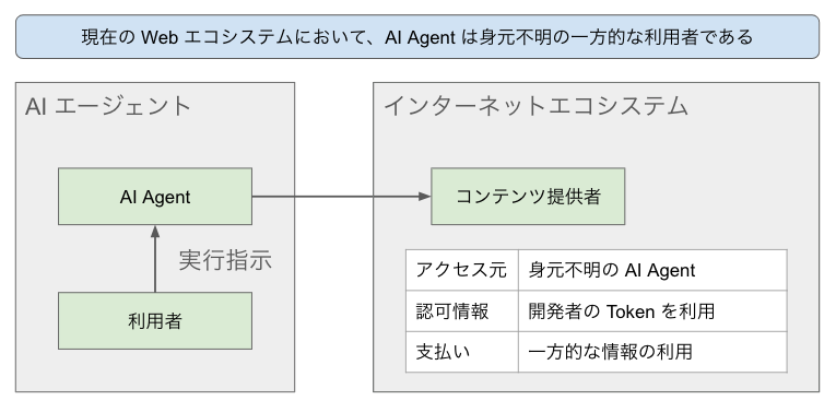 AI エージェントは、現在のインターネットエコシステムでは情報の一方的な利用者でしかありません。