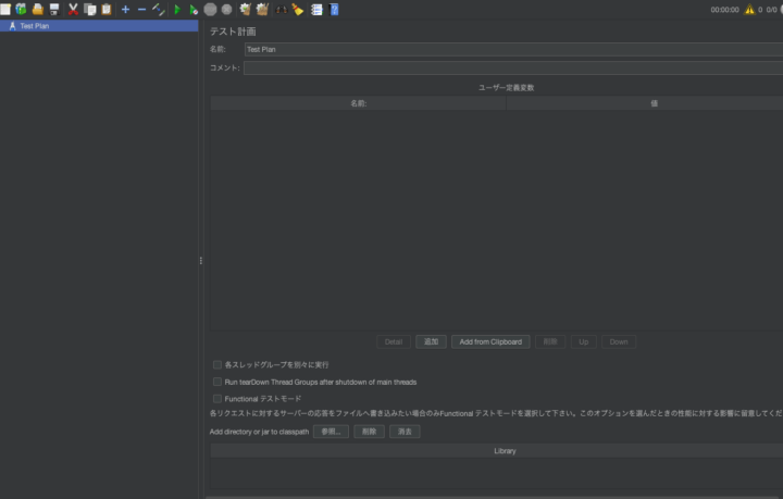 起動すると左側のツリーに「テスト計画(Test Plan)」が表示されます。
