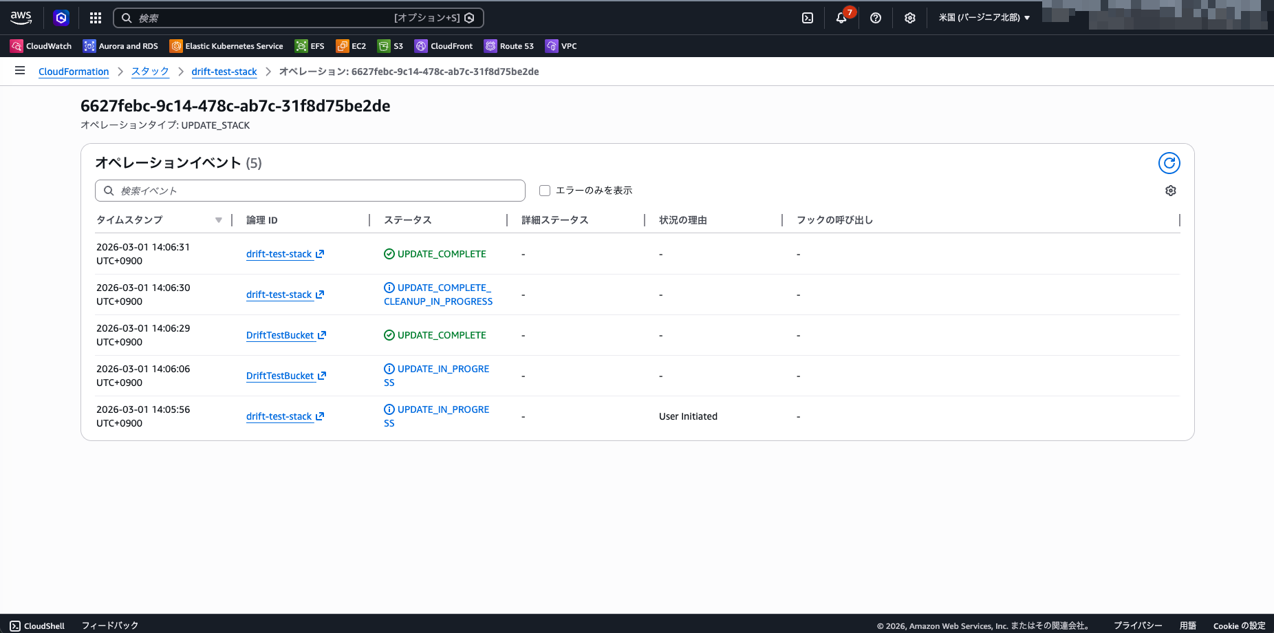 CloudFormationは実際の設定を正とし、ドリフト許したるマンです。