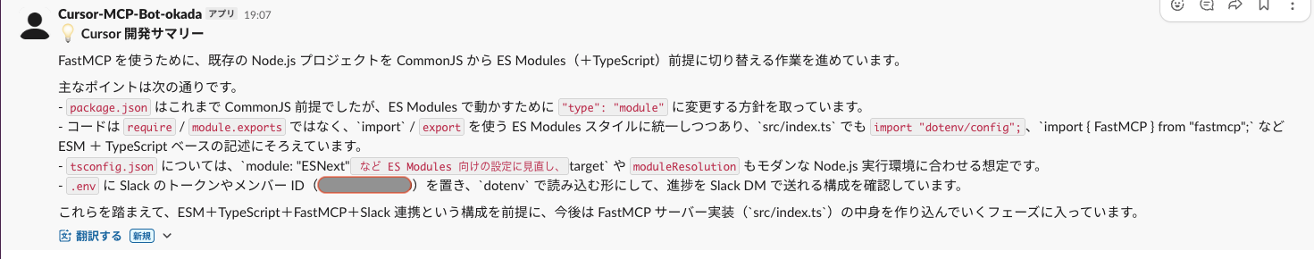 text: `💡 *Cursor 開発サマリー*\n\n${summary}`,