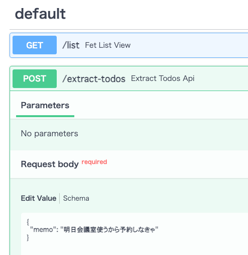 もう一つの工夫ポイントはFastAPI標準のSwagger UIをフル活用したというところです。