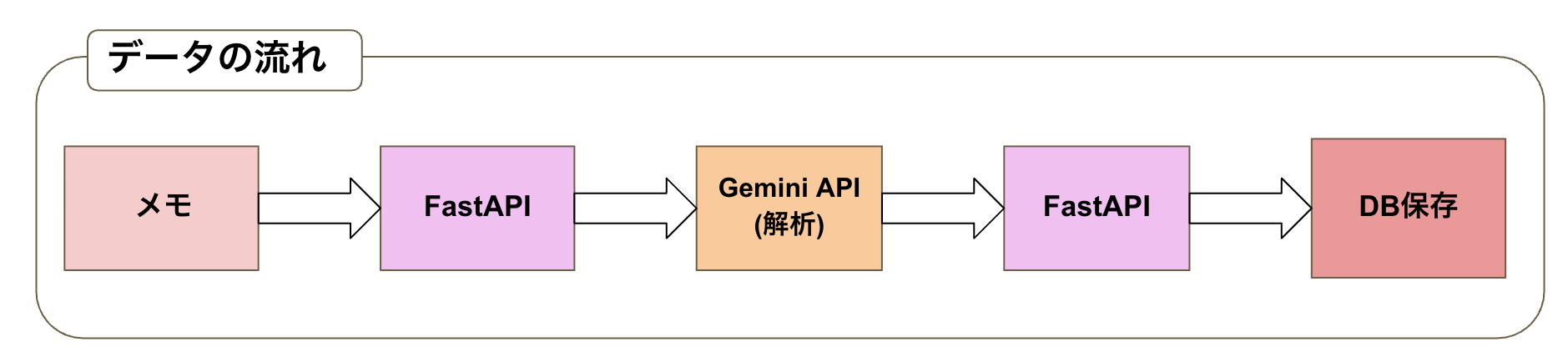 見た目は非常にシンプルで開発者向けですが、この画面のおかげでフロントエンドが未完成の状態でも、「メモを投げたら、Geminiが正しく解析して、データベースに保存されるか」というバックエンドの動きをすぐに確認することができます。
