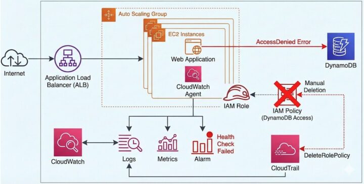 app-scenario1-ec2-role)から、DynamoDBへのアクセス権限(ポリシー)が手動で誤って削除される。 - アプリケーションのヘルスチェックエンドポイント(