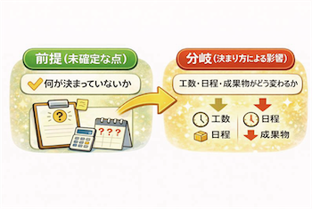 分岐(決まり方による影響):工数・日程・成果物がどう変わるか