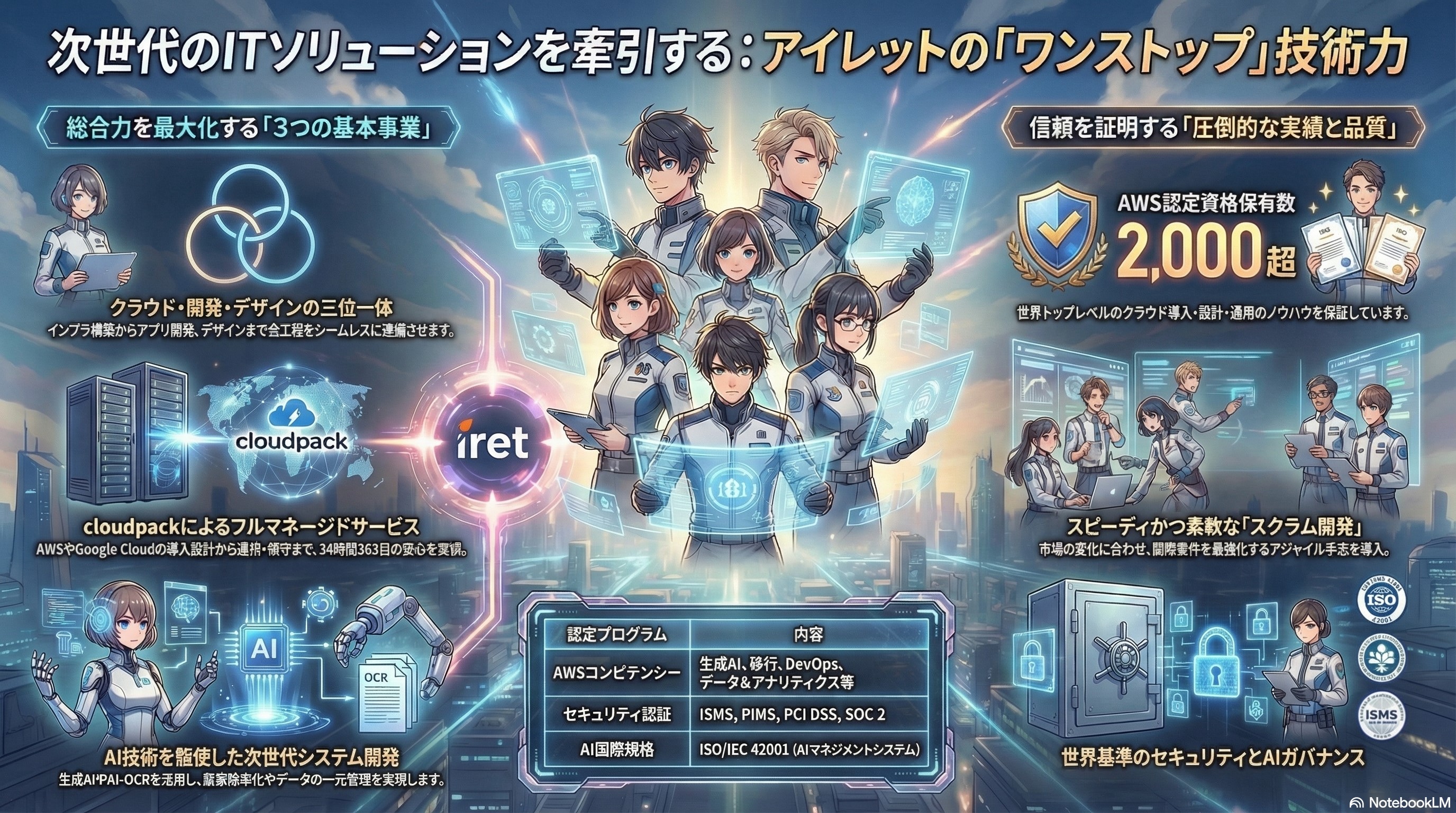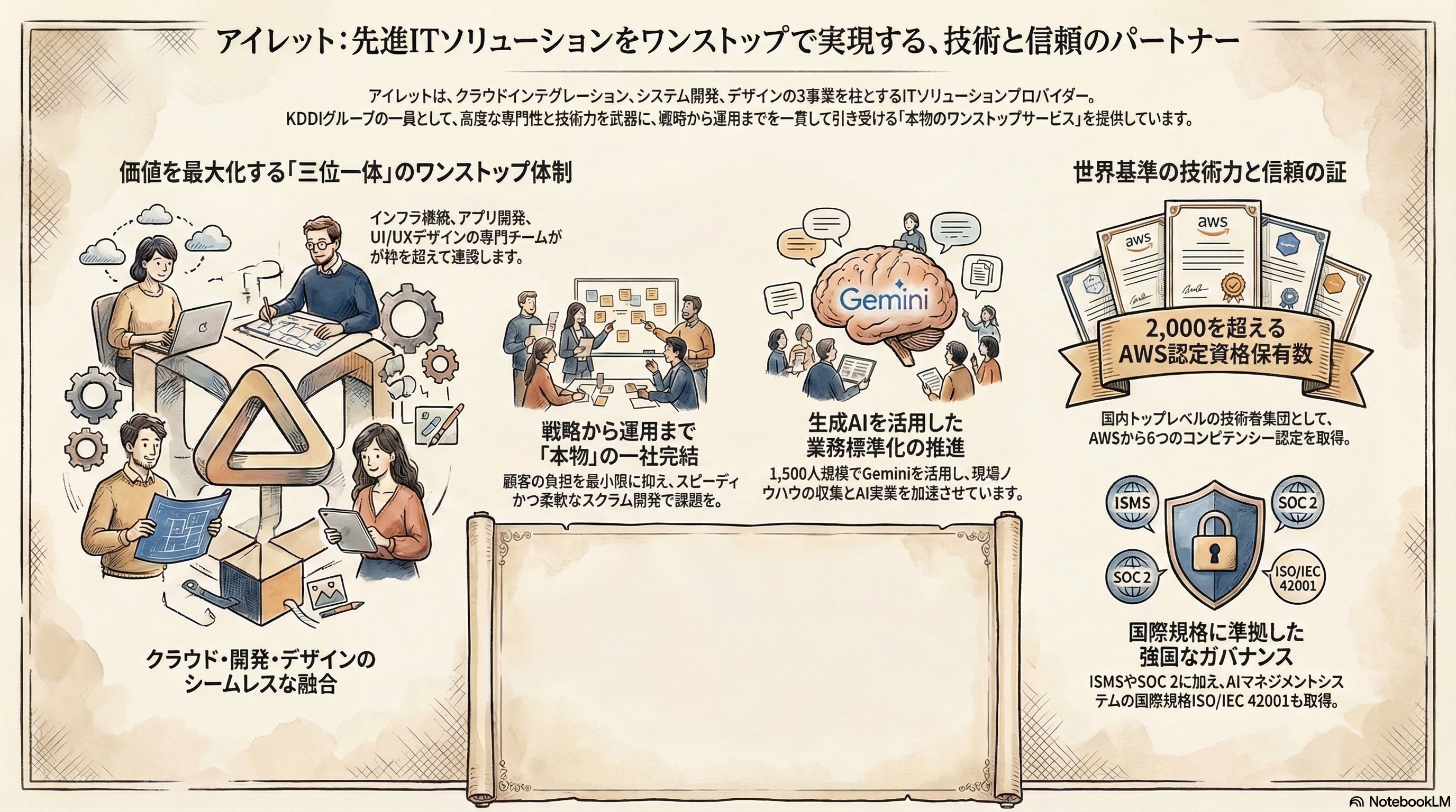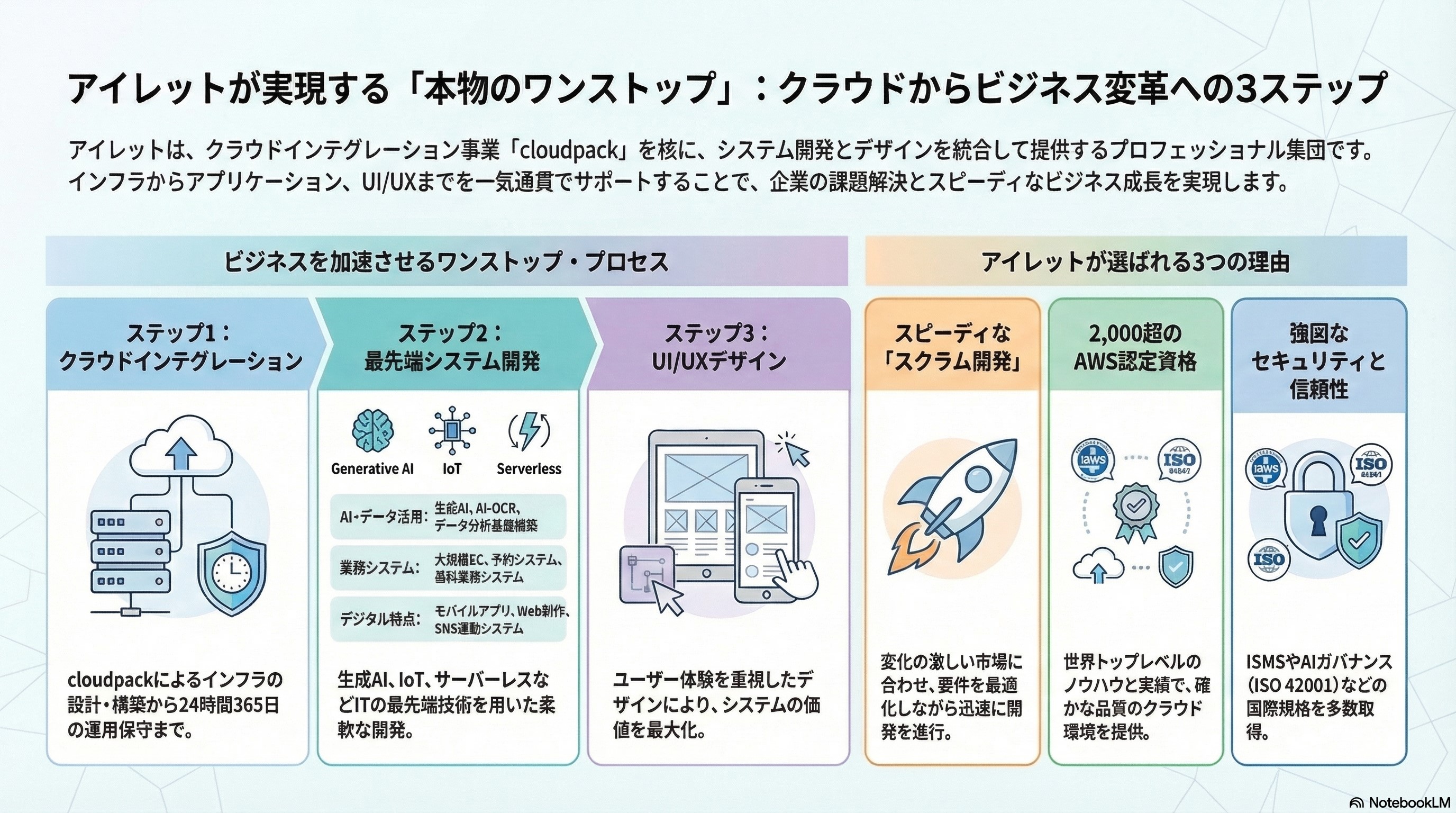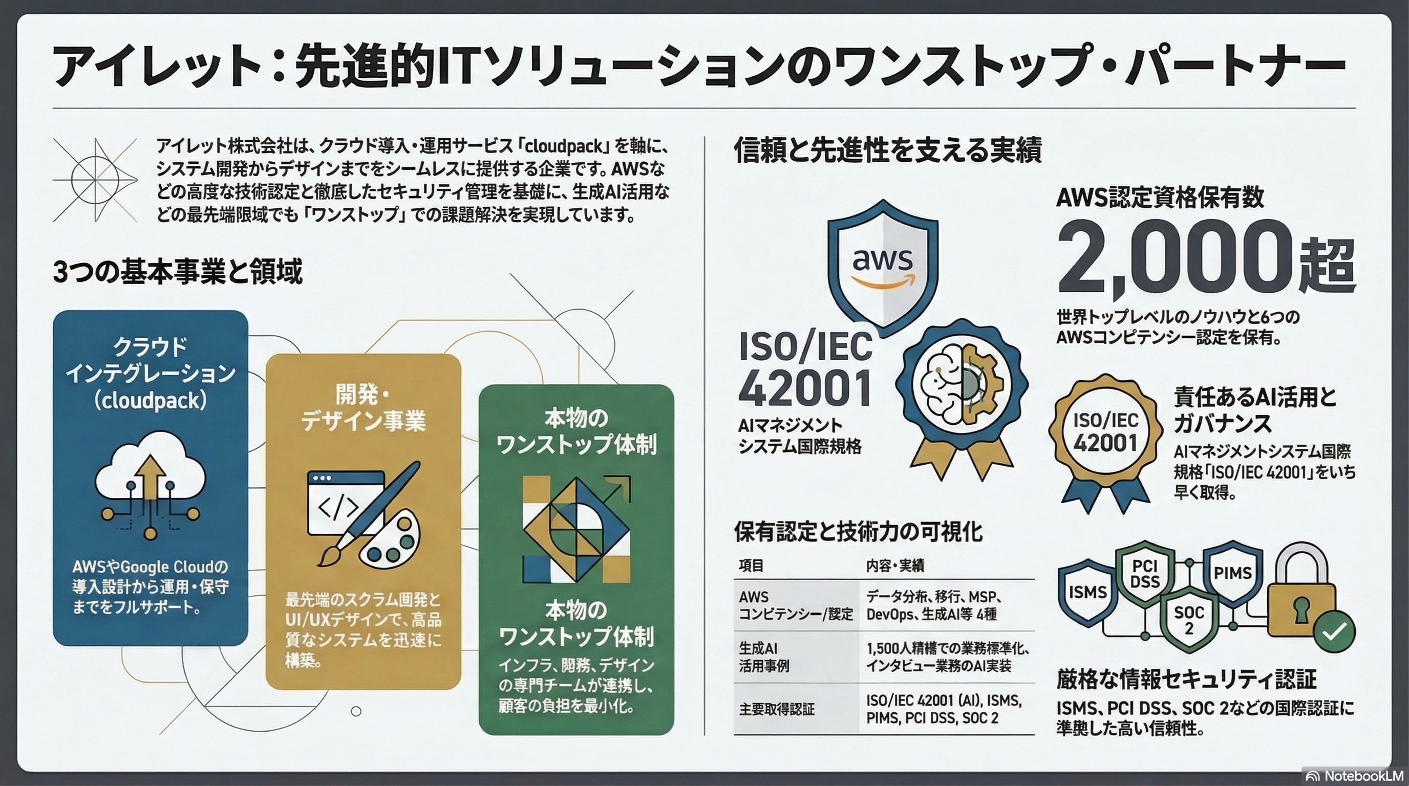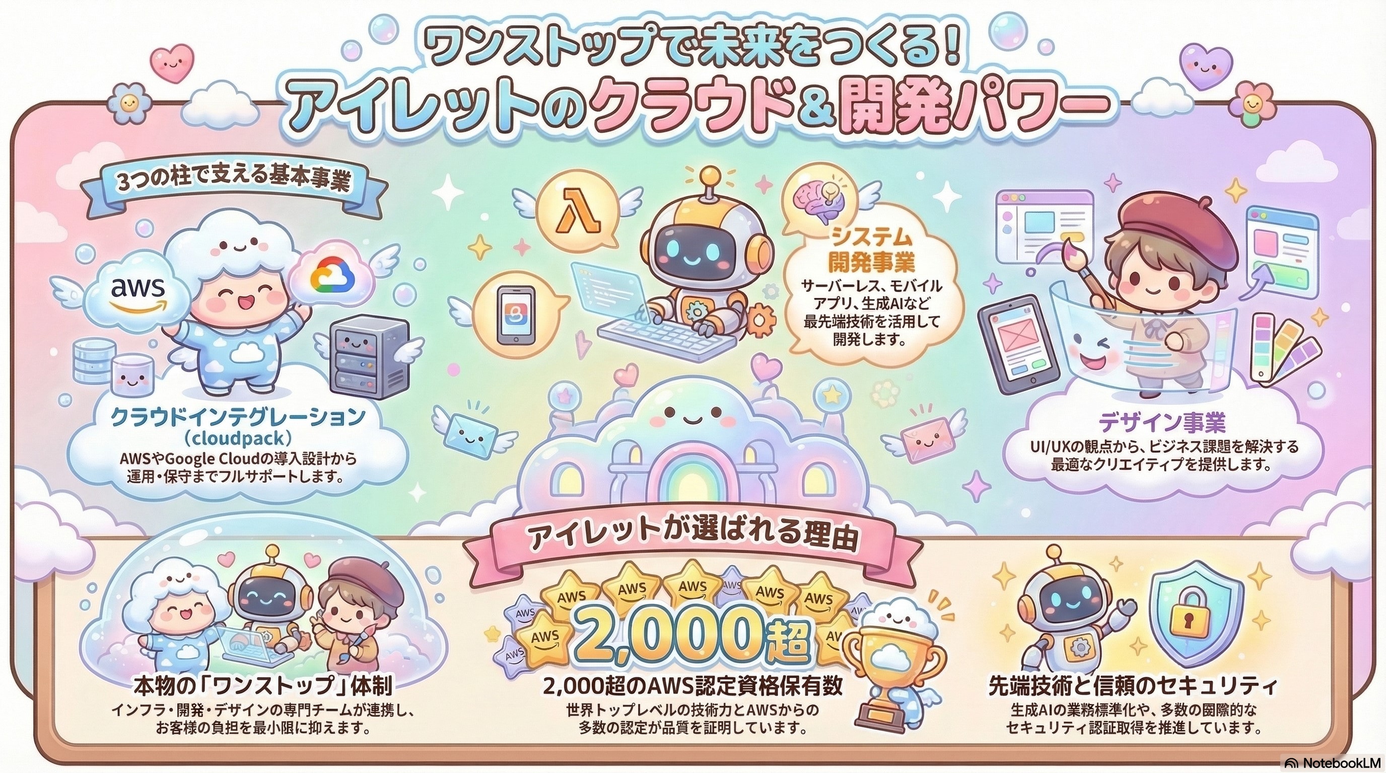 今回は、アイレットが誇る「クラウド・開発・デザイン」の三位一体の強みを、最新機能を駆使して全10スタイルで出力してみました。同じ内容でも、スタイル一つで印象がかなり変わることが分かりました!