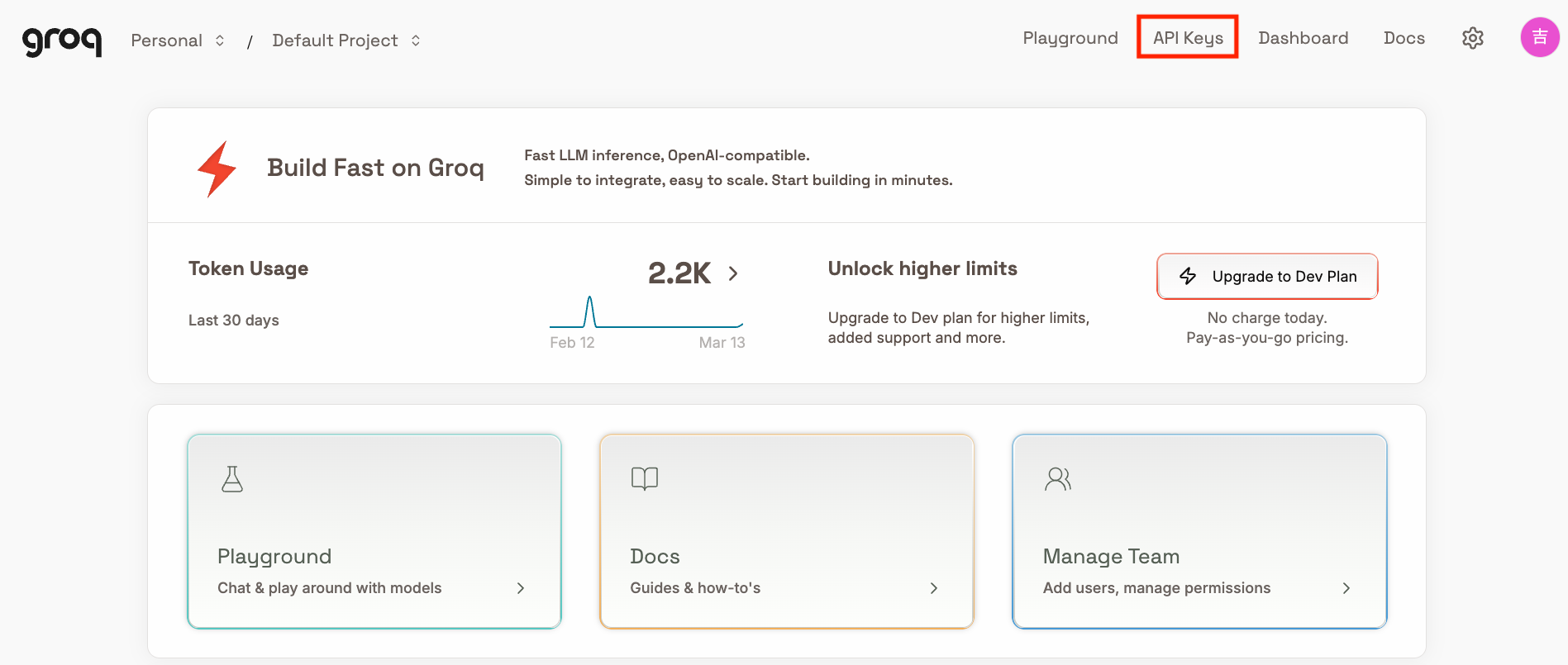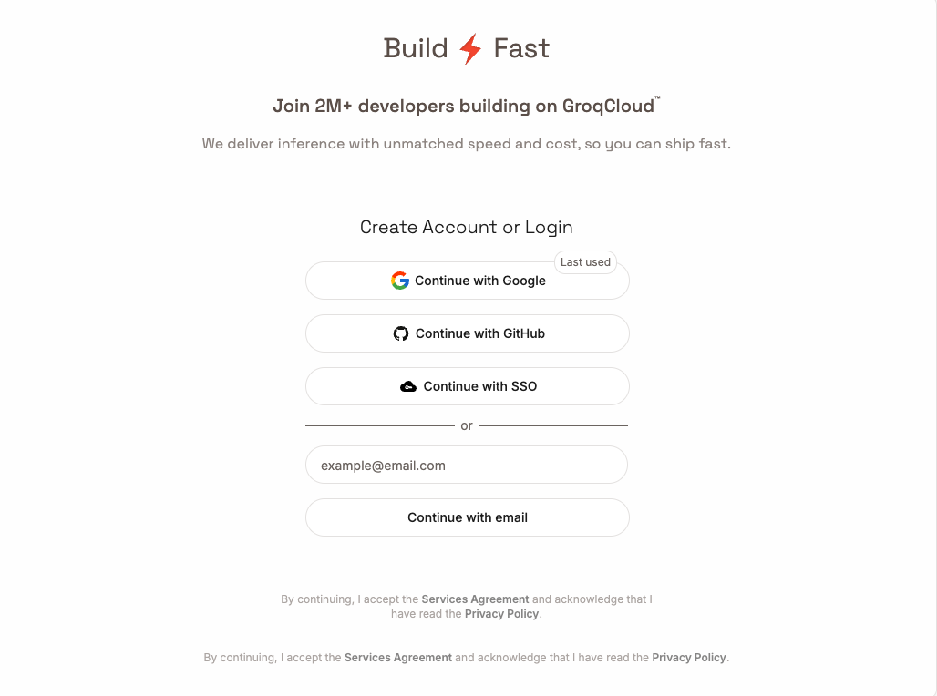 Groqにアクセスし、アカウントを作成します