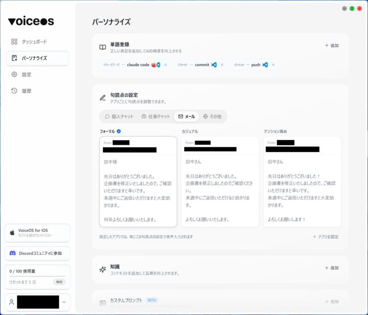 このVoiceOSの一番の特徴は「パーソナライズ」機能です。