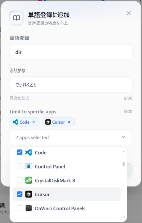 特に良い点がアプリケーションごとに単語登録が出来る点です。