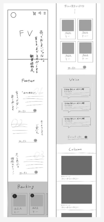 Figma 上でデザインを始める前に、まず手描きでラフを作成しました。