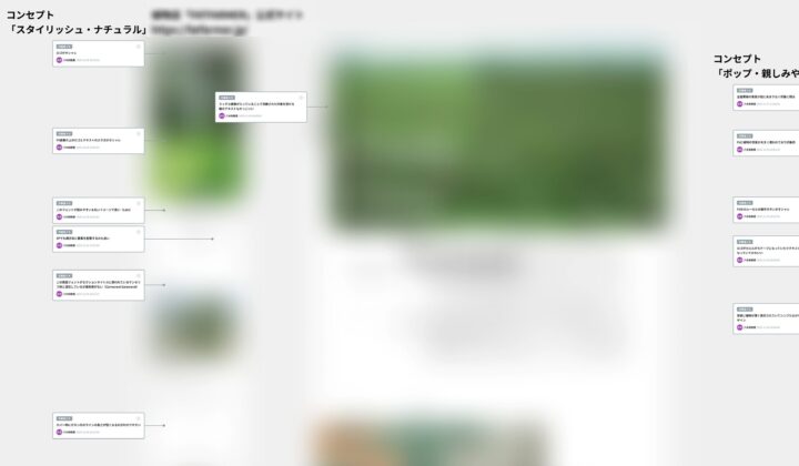 コンセプトが定まったところで、サンプリングした他社サイトと自分がデザインした元の Web サイトを比較します。