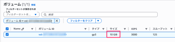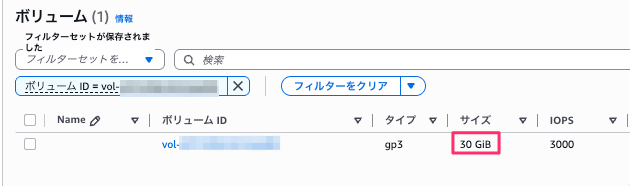 - 1回目の変更: gp3ボリュームのサイズを 10GiB → 30GiB に変更