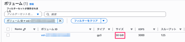 - 2回目の変更:gp3ボリュームのサイズを 30GiB → 50GiB に変更