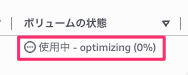 - 注意:容量変更後、ボリュームの状態が「optimizing」の間は連続して変更できません。