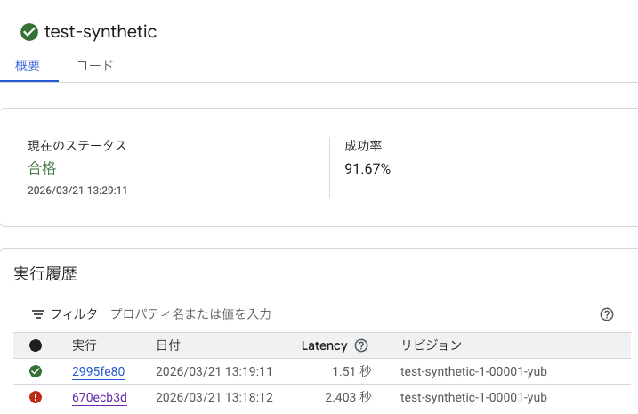 論より証拠ということで、実際に合成モニタリングを動かしてみましょう。