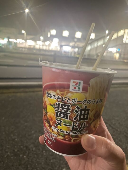少し冷たい空気の中で食べる深夜のカップラーメンはとても背徳的で、