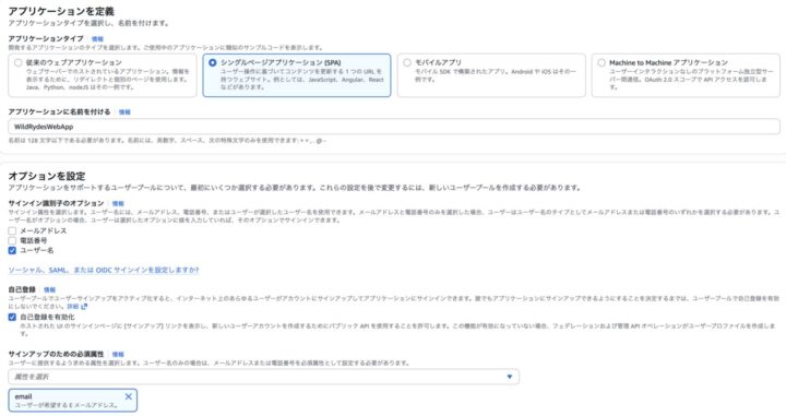 Amazon Cognito ユーザープールを作成し、アプリをユーザープールと結合する