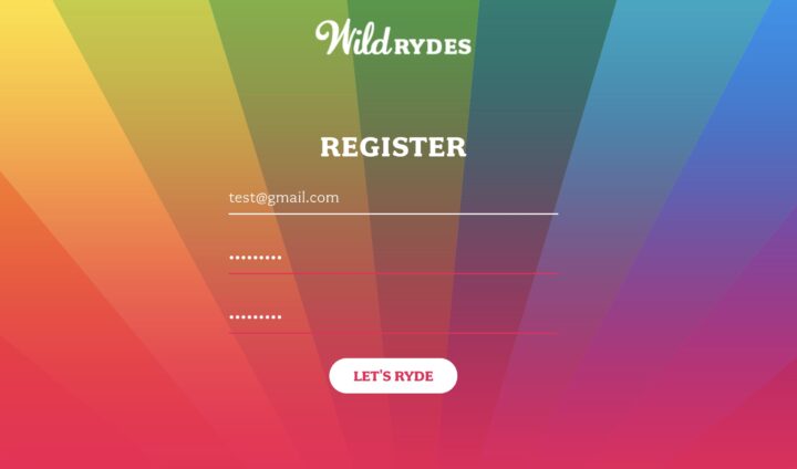 3.メールアドレス、パスワードを入力して、「LET’S RYDE」ボタンを押します。パスワードを忘れないように、どこかにメモしておきましょう。