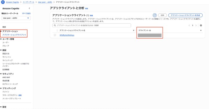 userPoolClientId:クライアントID