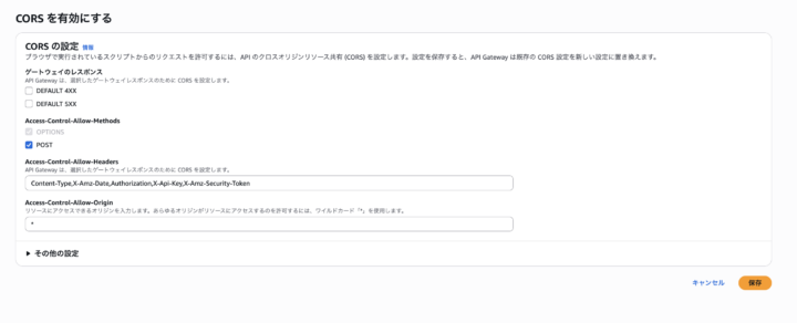 2「CORSを有効にする」を選択します。