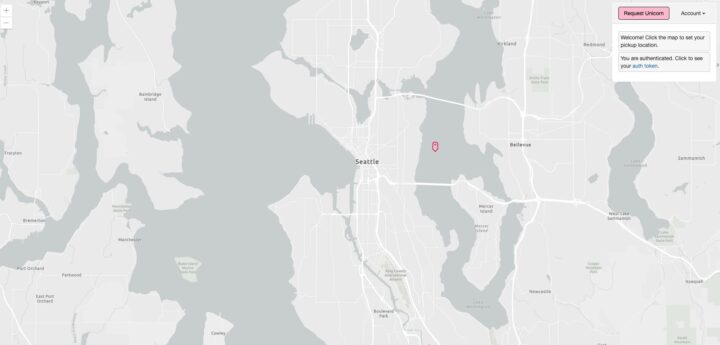 作業が完了すると、ユーザーはマップ上のポイントをクリックし、「Request Unicorn」ボタンを選択して、ユニコーンに乗る場所を選択することができるようになります。