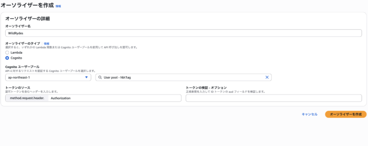 オーソライザー名:「WildRydes」