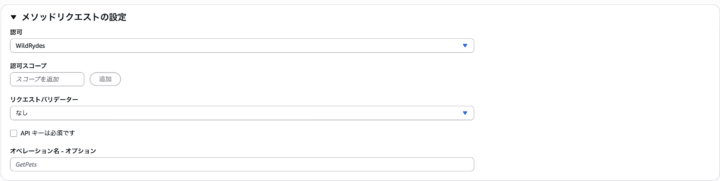 メソッドリクエストの設定>許可:「WildRydes」