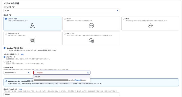 統合タイプ:Lambda関数