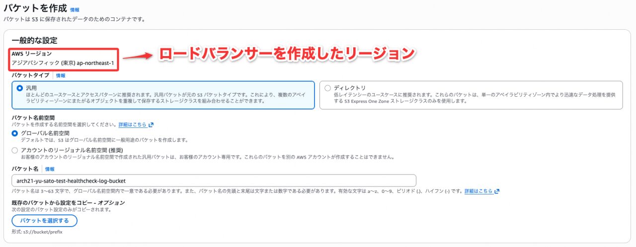- リージョン:ALBと同じリージョン(東京)を選択