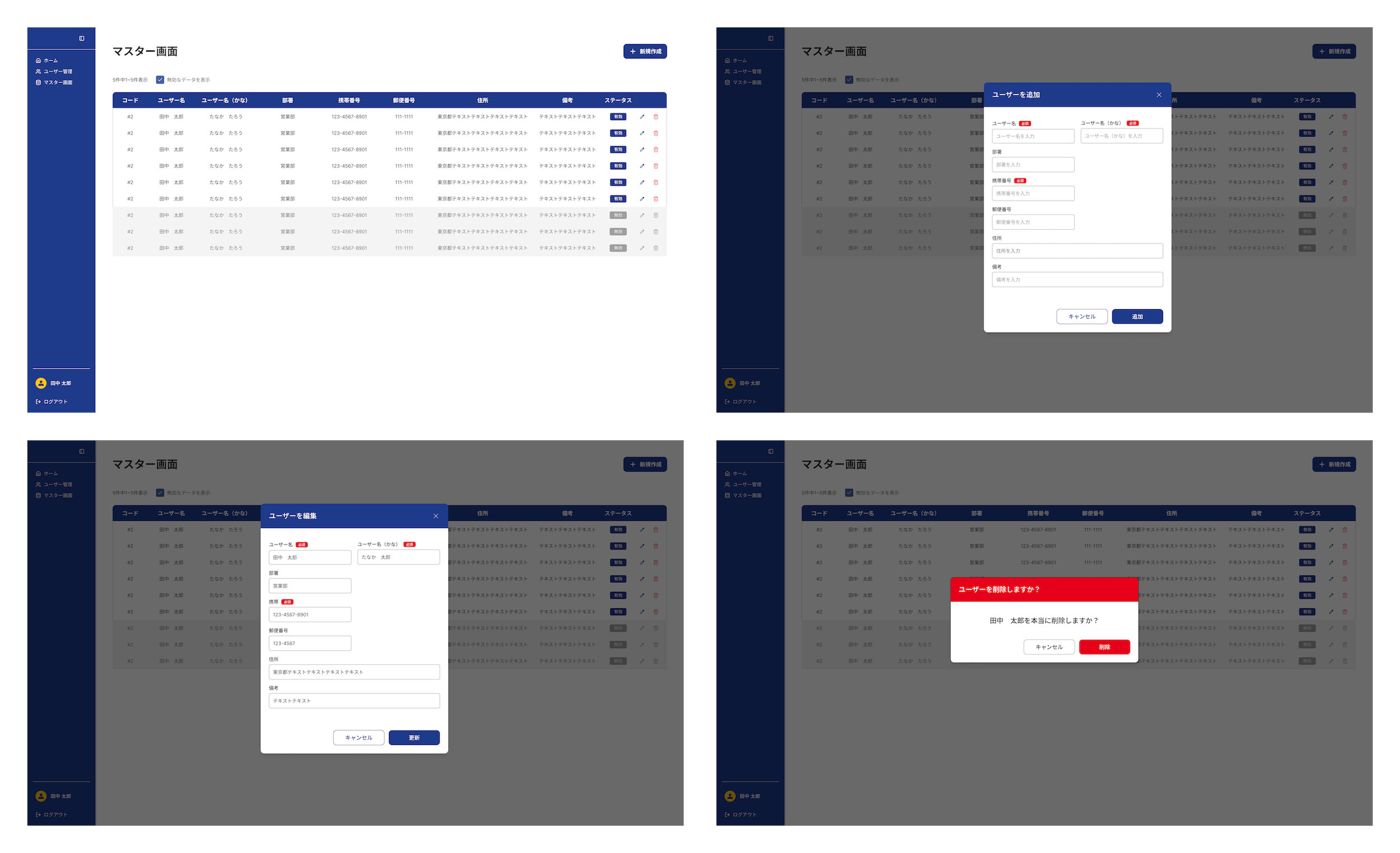 今回作成するユーザー管理画面:一覧画面・追加・編集・削除が可能