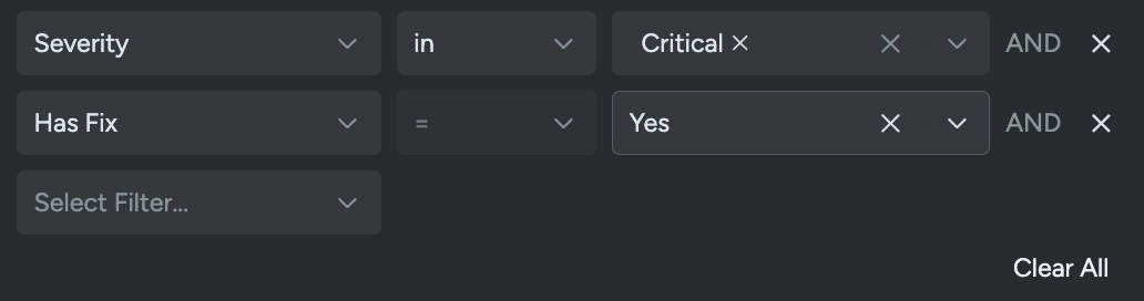 例えば、Severity が CRITICAL かつ Has Fix であれば即時対応が必要などの具体的な指標を設けています。