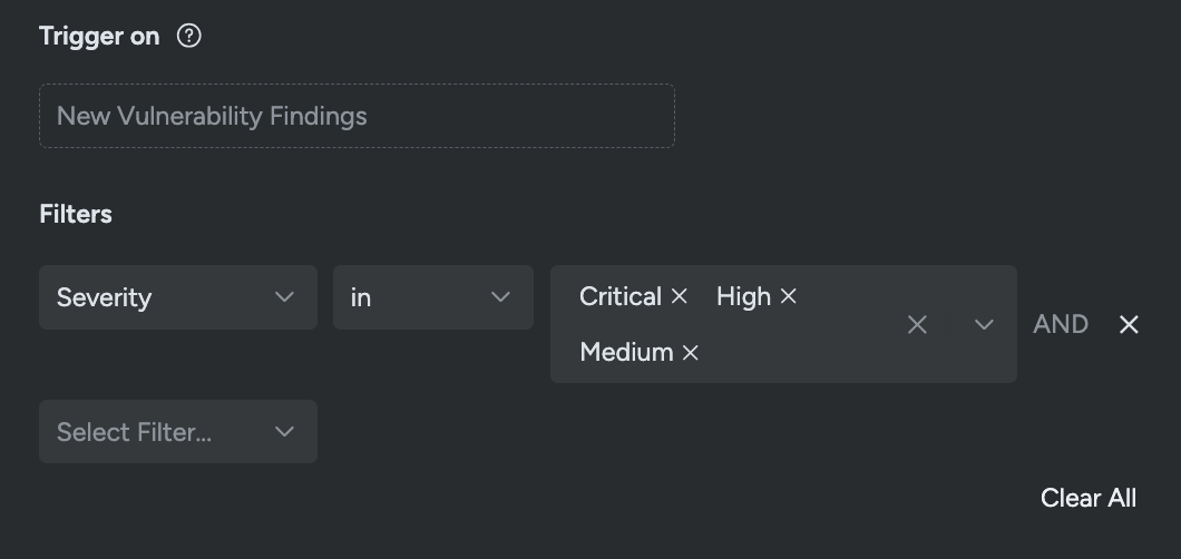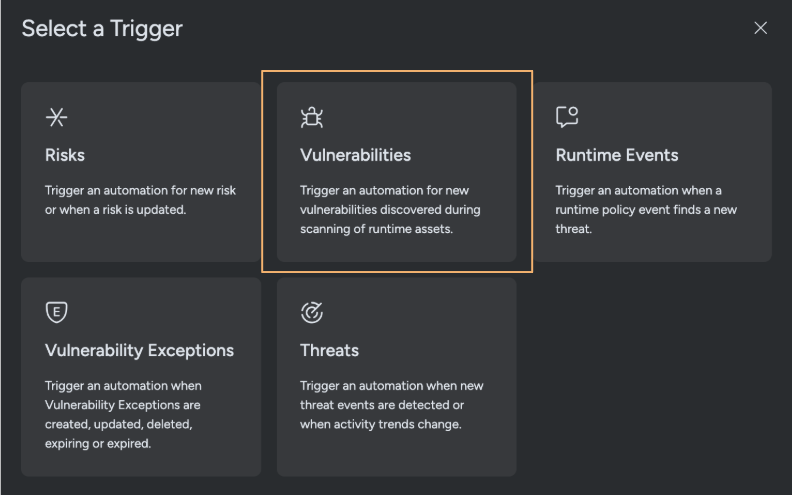 今回の場合、脆弱性の検出を契機にするため、『Vulnerabilities』を選択します。