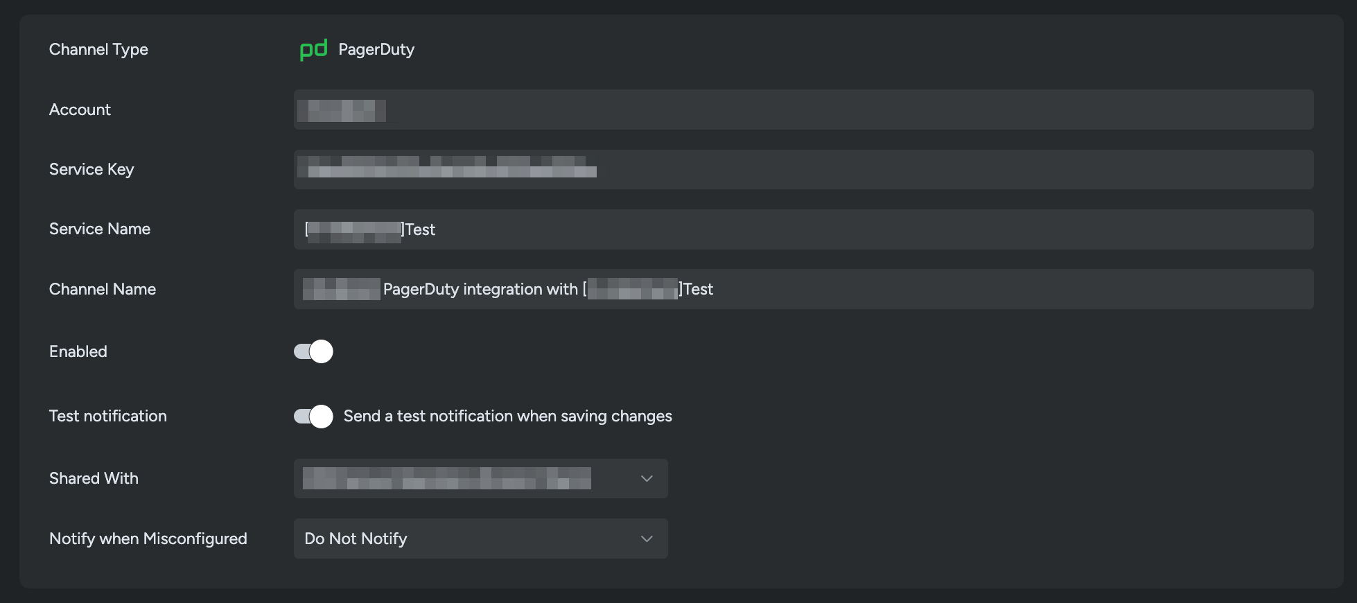 Sysdig と PagerDuty が自動連携されるため、Save を行います。