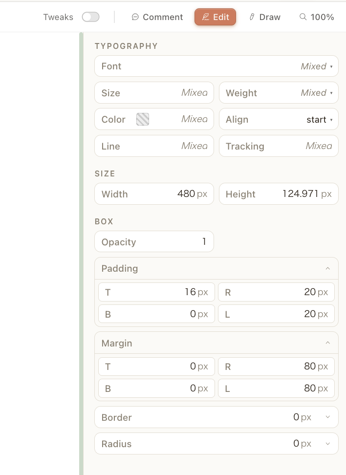 - インラインコメント: 「Edit」ボタンで左側にパネルが開き、部分的な変更が可能です。