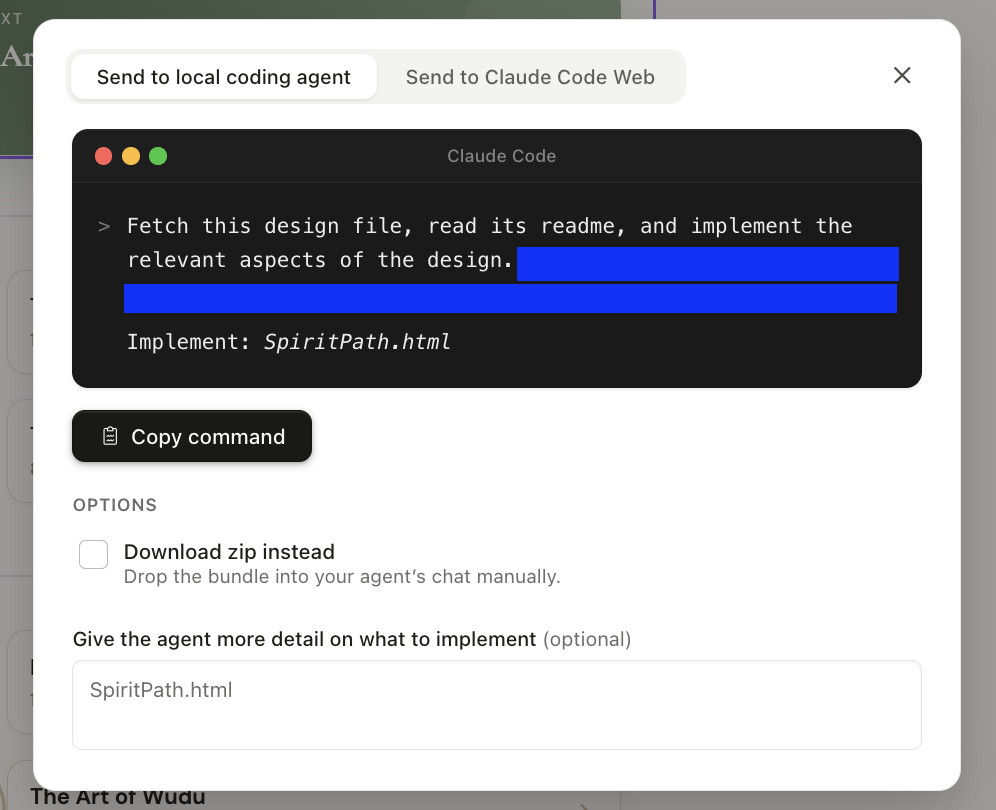 ここがClaude Designの最大の強みではないかと思います。デザインした成果物は、そのままClaude Codeへ移行することができます!