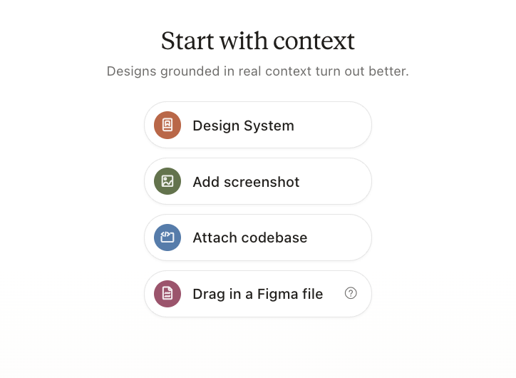 Claude Designを開くと、4つの選択肢から選択するか、プロンプトを入力することで使用することができます。