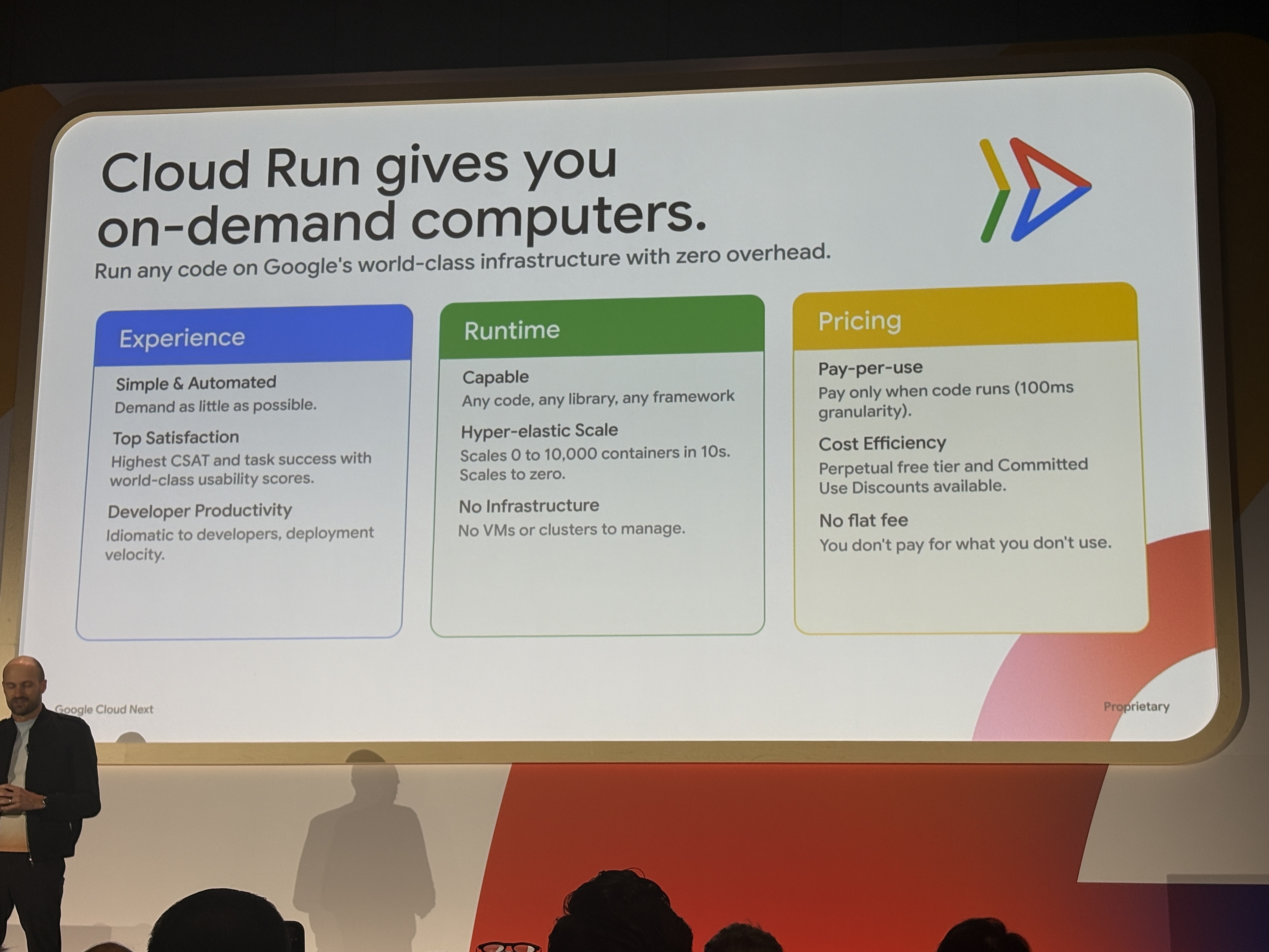 セッションは「Cloud Run gives you on-demand computers」という一文から始まりました。