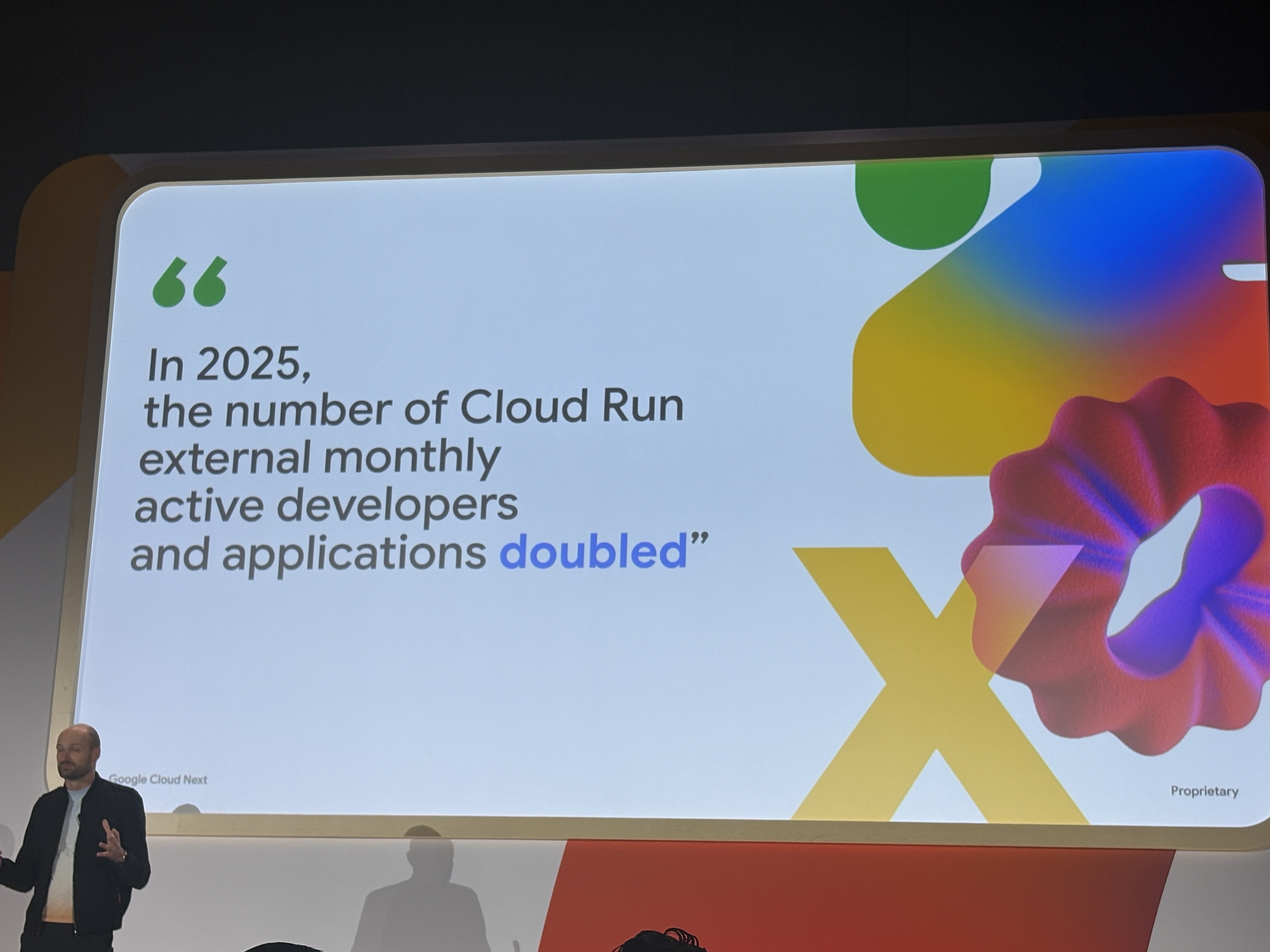 2025年の1年間で、外部の月間アクティブ開発者数とアプリケーション数が2倍になったということで、AIエージェント需要にともなうCloud Runの使用数も今後さらに増えていくと思います。