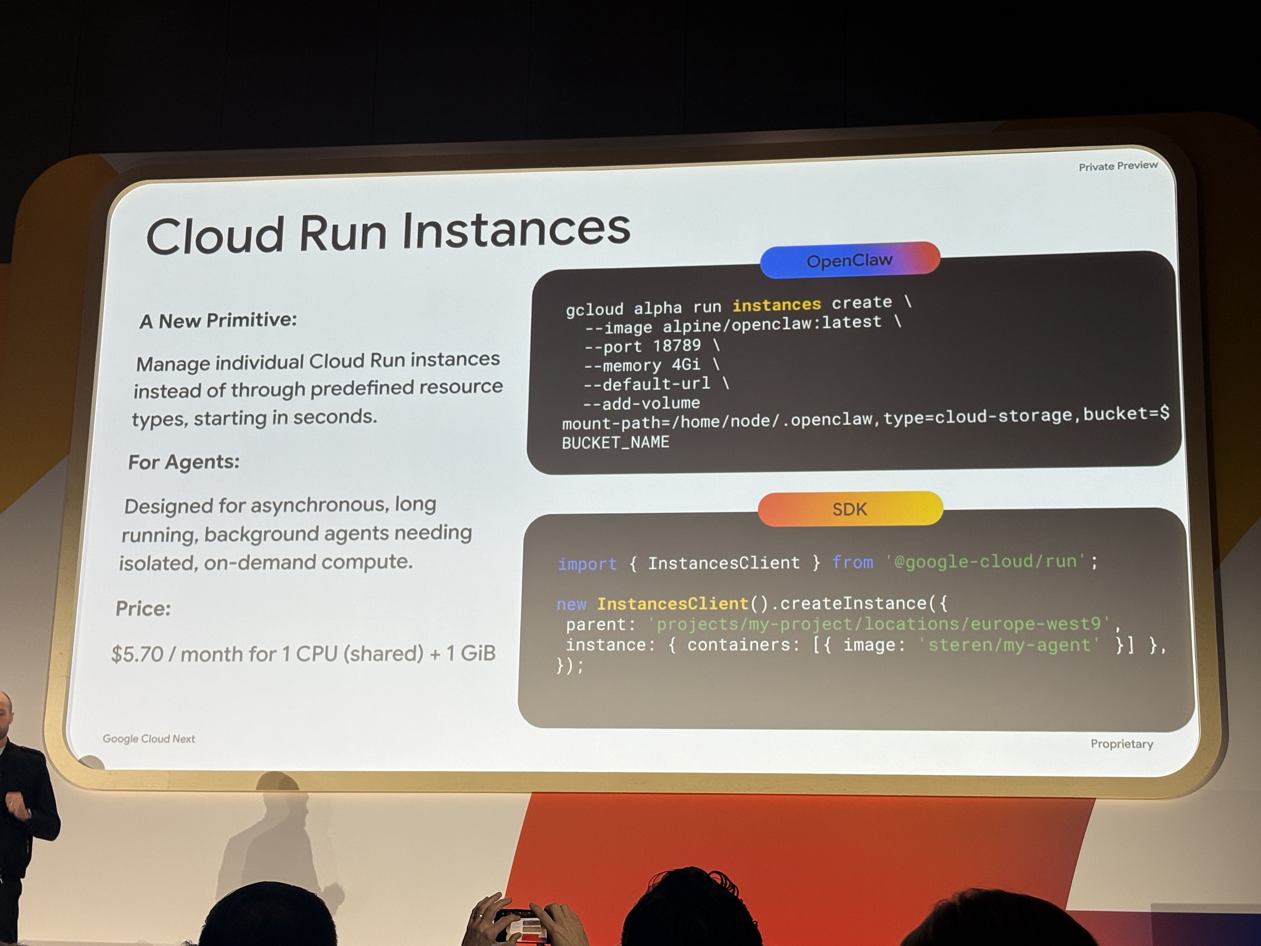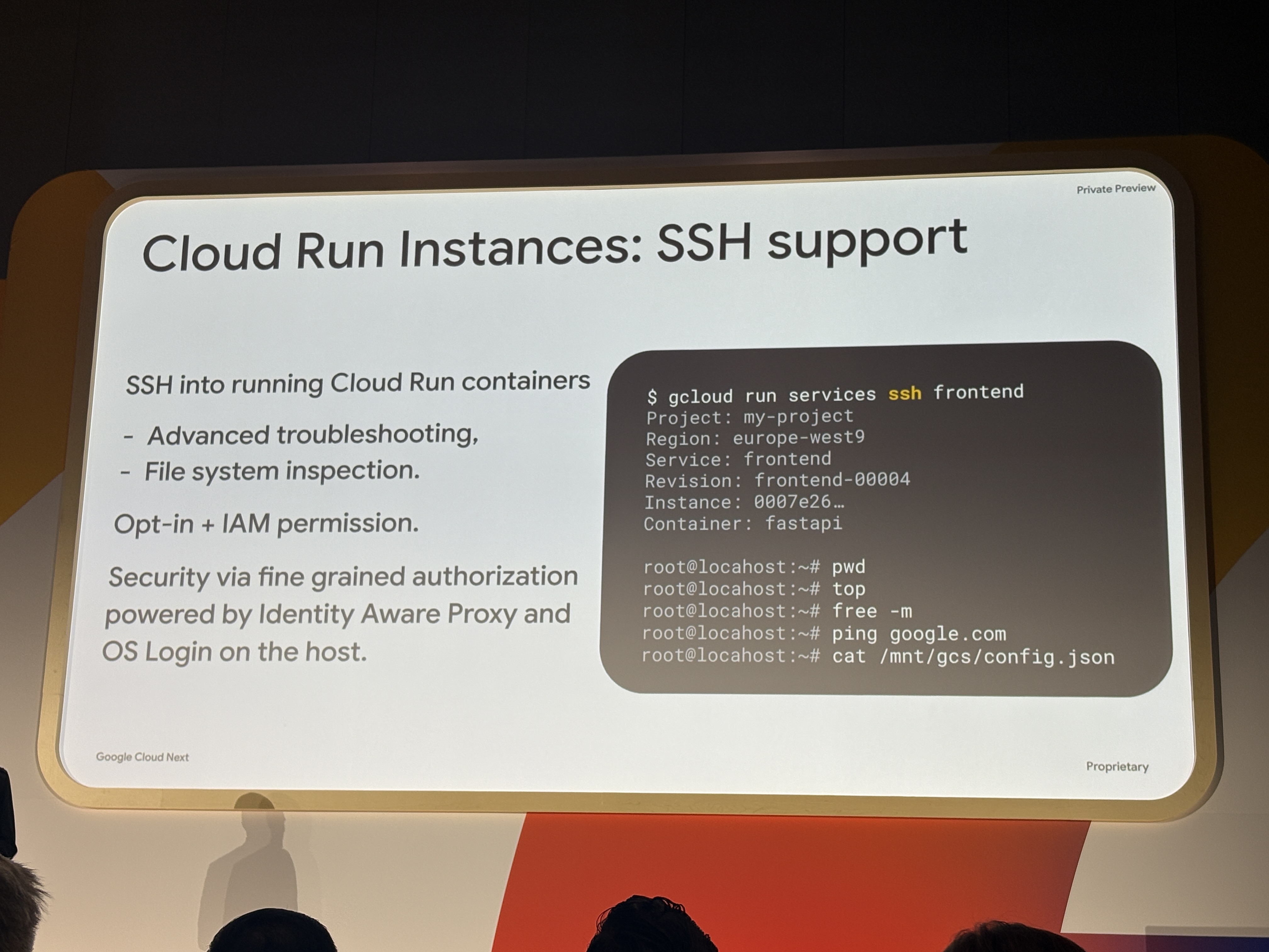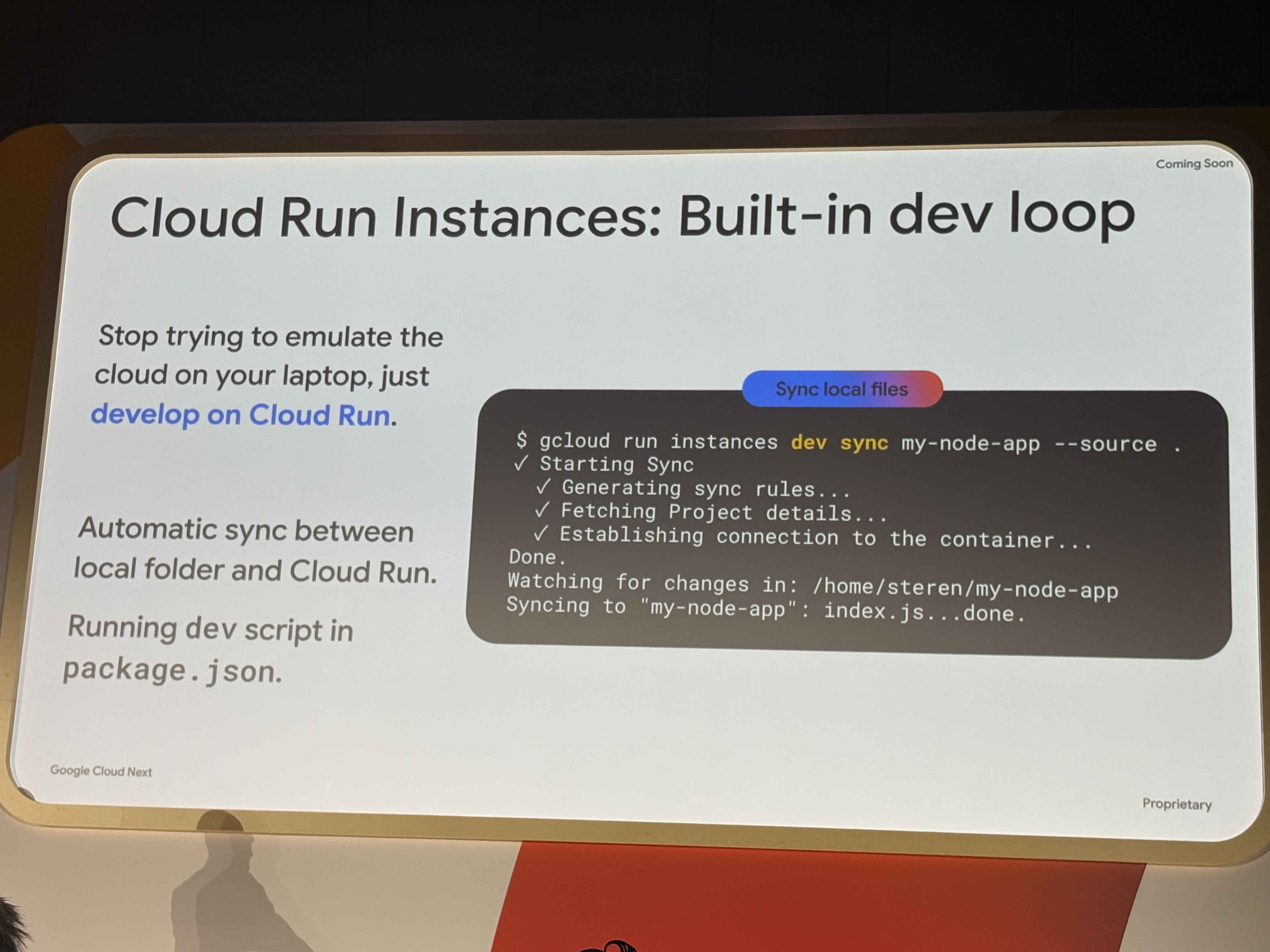 個人的に一番興味深かったのはCloud Run Instancesです。「インスタンスを個別に管理できる」「SSHで入れる」「ローカルとリアルタイム同期できる」という機能群は、今後のAIエージェントの更なる需要増加を見越してより開発しやすく、より運用しやすくという点でサポートが強化されていますね。