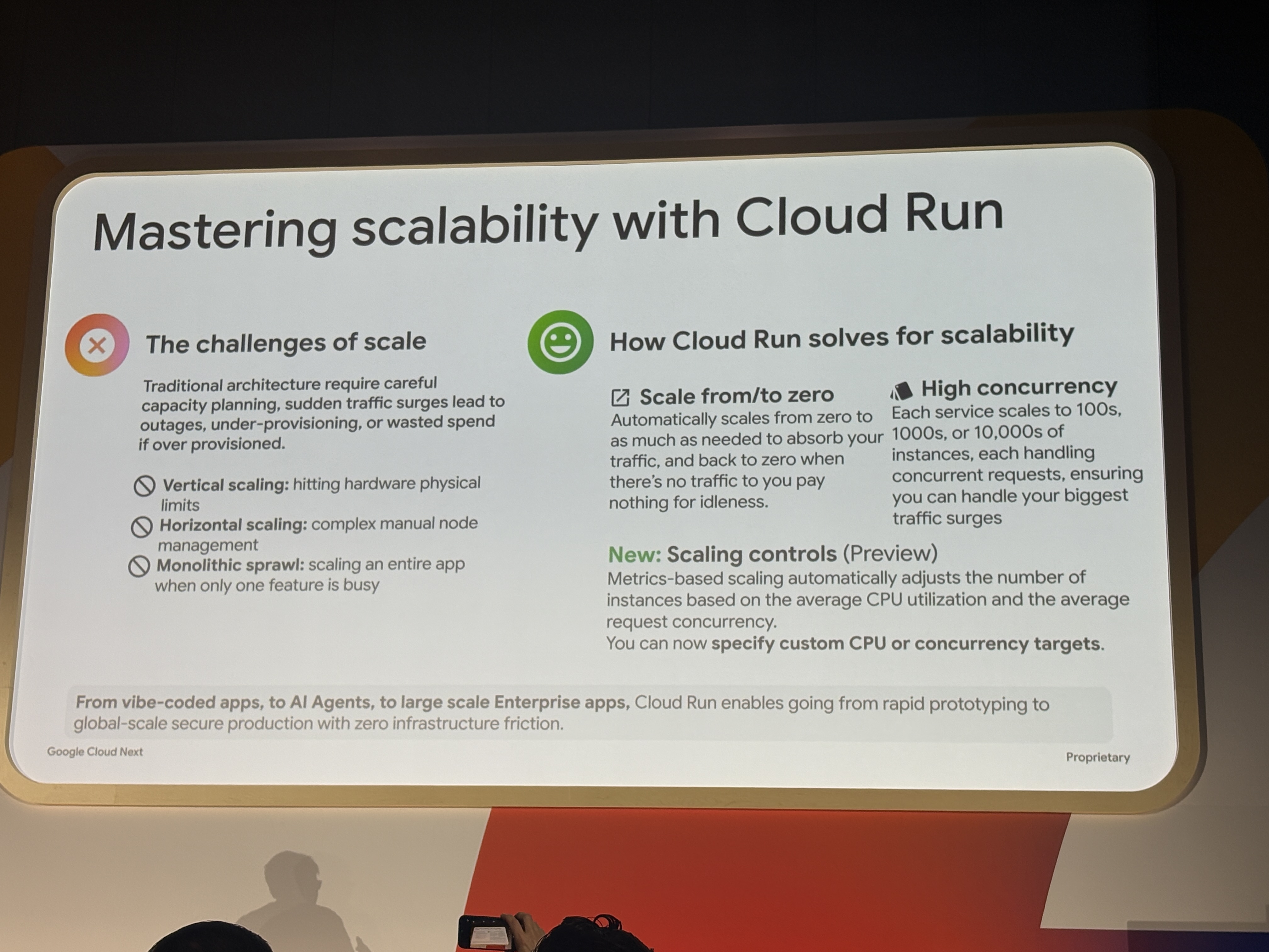 Cloud Runのプロダクトチームに加え、Replitのエンジニアリング副社長Scott Edward氏、そしてAnthropicのエンジニアMimi氏が登壇するという珍しい構成でした。